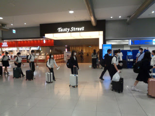チケットを受け取って、いよいよ搭乗です!荷物を預けて、手荷物検査!皆さん、無事通過です!